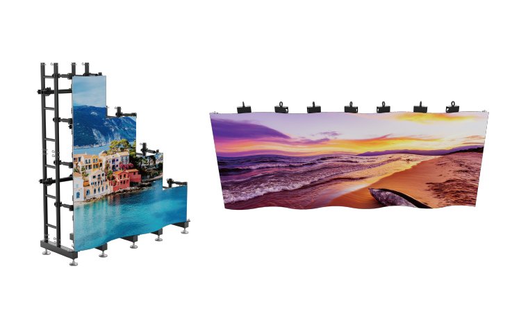 Absen FL系列作為一款舞臺創意顯示柔性屏,具有超高的靈活度,無論是大角度的內外弧造型,還是圓柱、90°圓弧直角造型都能輕松打造,是NT系列直屏版的絕佳創意搭檔。想要肆意打造不拘一格的靈感舞臺?FL系列絕對是你不能錯過的產品。