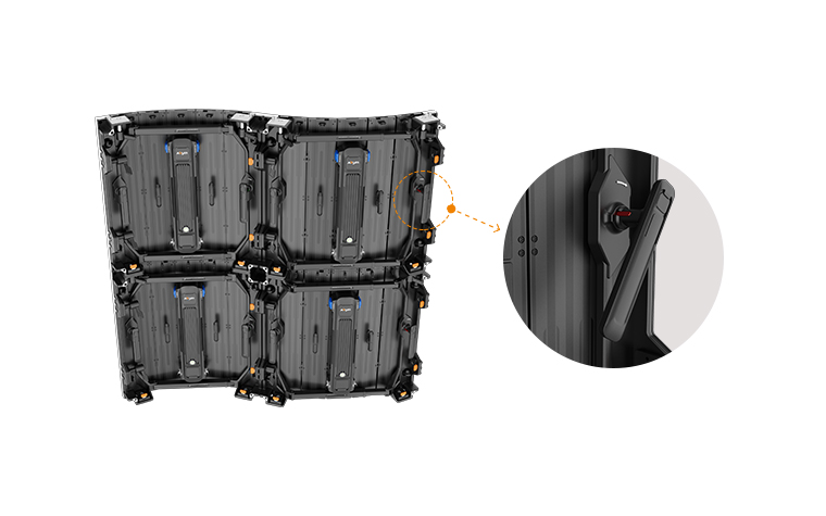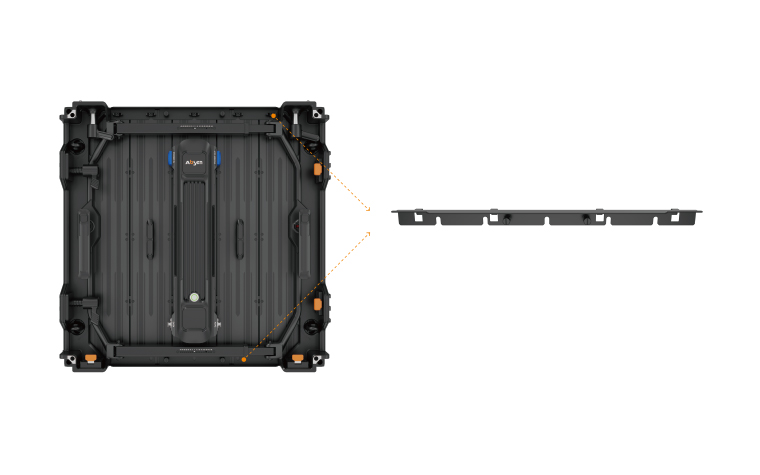 ⑥ 吊裝堆裝皆可,曲線依然:FL系列設計了小巧靈活的吊裝塊配件,以及前端帶有獨立連接片的專用配套支撐架配件,完美適配各種造型的弧形屏體安裝需求。